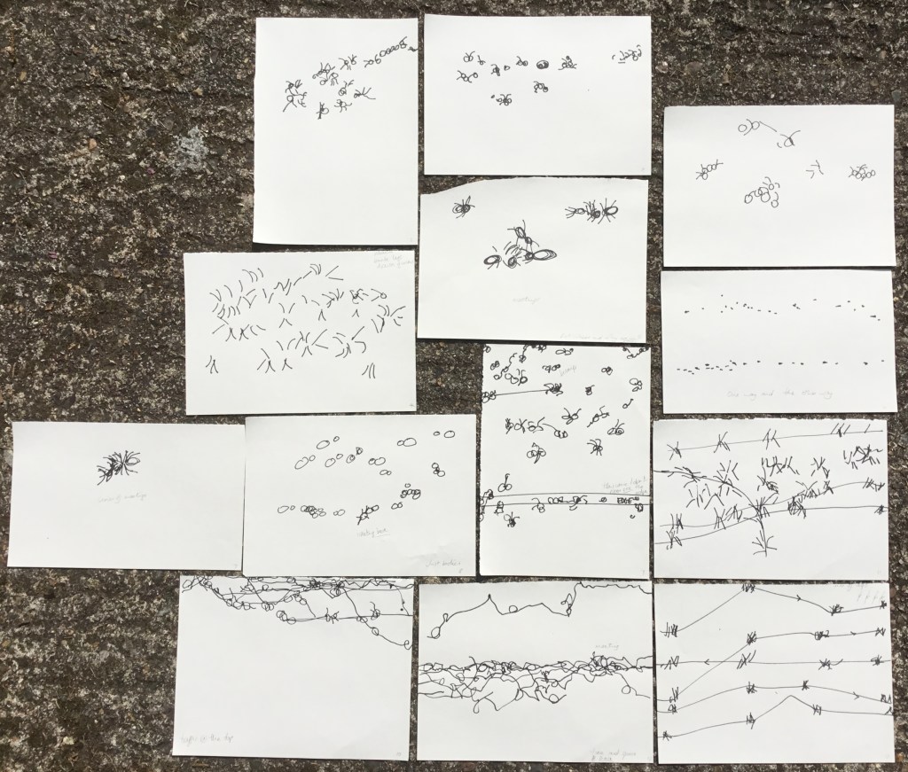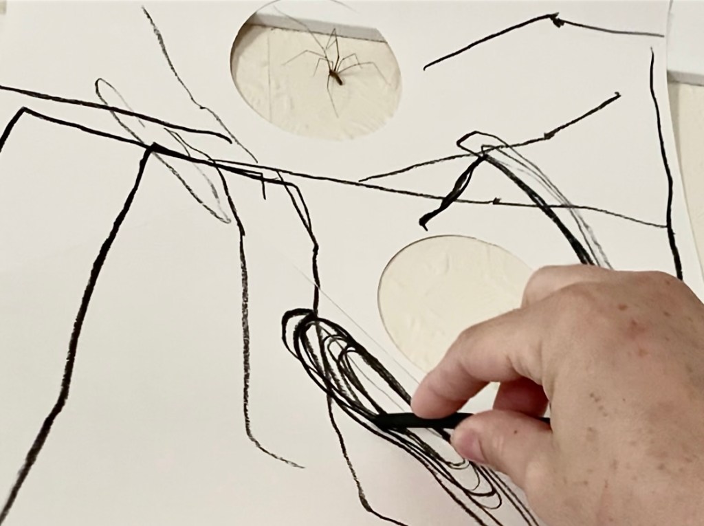 Kay’s visual practice revolves around the relationships we have with small invertebrate animals, commonly known as minibeasts, living alongside us in our houses and gardens. Kay uses embodied drawing practices to question the status quo of these minibeast relationships, and particularly how we learn about them as children.